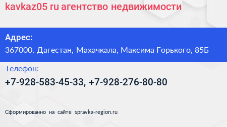 kavkaz05.ru, агентство недвижимости по адресу 367000, Дагестан, Махачкала, Максима Горького, 85Б в дальнейшем Организация, размещена в следующих категориях: