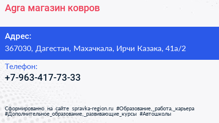 Agra, магазин ковров по адресу 367030, Дагестан, Махачкала, Ирчи Казака, 41а/2 в дальнейшем Организация, размещена в следующих категориях: