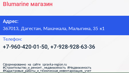 Blumarine, магазин по адресу 367013, Дагестан, Махачкала, Малыгина, 35 к1 в дальнейшем Организация, размещена в следующих категориях: