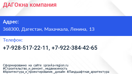 ДАГОкна, компания по адресу 368300, Дагестан, Махачкала, Ленина, 13 в дальнейшем Организация, размещена в следующих категориях: