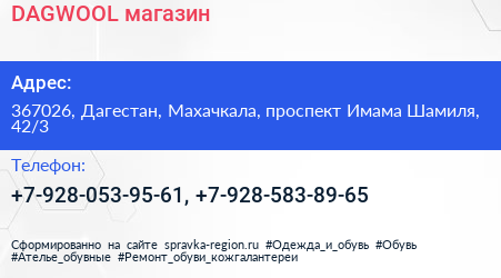 DAGWOOL, магазин по адресу 367026, Дагестан, Махачкала, проспект Имама Шамиля, 42/3 в дальнейшем Организация, размещена в следующих категориях: