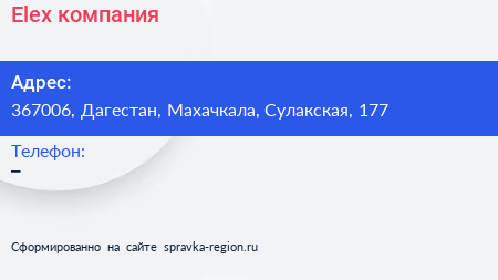 Elex, компания по адресу 367006, Дагестан, Махачкала, Сулакская, 177 в дальнейшем Организация, размещена в следующих категориях:
