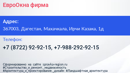 ЕвроОкна, фирма по адресу 367003, Дагестан, Махачкала, Ирчи Казака, 1д в дальнейшем Организация, размещена в следующих категориях: