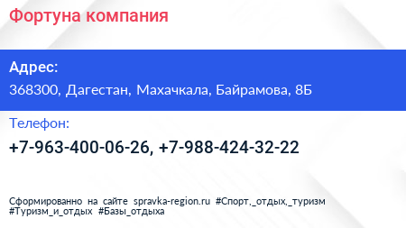 Фортуна, компания по адресу 368300, Дагестан, Махачкала, Байрамова, 8Б в дальнейшем Организация, размещена в следующих категориях: