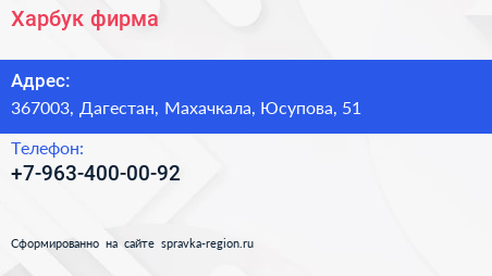 Харбук, фирма по адресу 367003, Дагестан, Махачкала, Юсупова, 51 в дальнейшем Организация, размещена в следующих категориях: