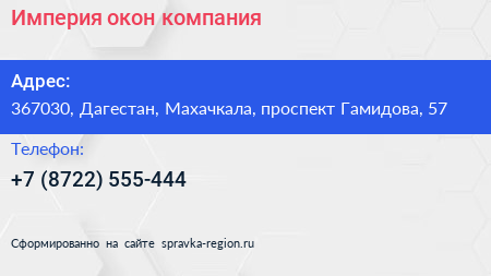 Империя окон, компания по адресу 367030, Дагестан, Махачкала, проспект Гамидова, 57 в дальнейшем Организация, размещена в следующих категориях: