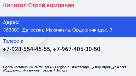 Капитал-Строй, компания по адресу 368300, Дагестан, Махачкала, Орджоникидзе, 9 в дальнейшем Организация, размещена в следующих категориях:
