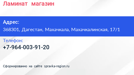Ламинат+, магазин по адресу 368301, Дагестан, Махачкала, Махачкалинская, 17/1 в дальнейшем Организация, размещена в следующих категориях: