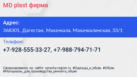 MD plast, фирма по адресу 368301, Дагестан, Махачкала, Махачкалинская, 33/1 в дальнейшем Организация, размещена в следующих категориях: