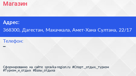 Магазин по адресу 368300, Дагестан, Махачкала, Амет-Хана Султана, 22/17 в дальнейшем Организация, размещена в следующих категориях: