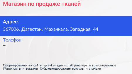 Магазин по продаже тканей по адресу 367006, Дагестан, Махачкала, Западная, 44 в дальнейшем Организация, размещена в следующих категориях:
