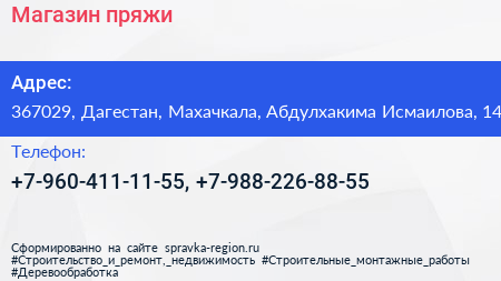 Магазин пряжи по адресу 367029, Дагестан, Махачкала, Абдулхакима Исмаилова, 14 в дальнейшем Организация, размещена в следующих категориях: