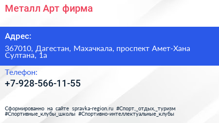 Металл Арт, фирма по адресу 367010, Дагестан, Махачкала, проспект Амет-Хана Султана, 1а в дальнейшем Организация, размещена в следующих категориях: