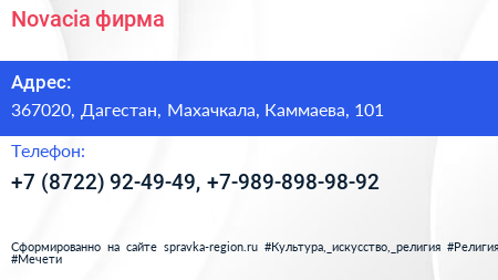 Novacia, фирма по адресу 367020, Дагестан, Махачкала, Каммаева, 101 в дальнейшем Организация, размещена в следующих категориях: