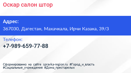 Оскар, салон штор по адресу 367030, Дагестан, Махачкала, Ирчи Казака, 39/3 в дальнейшем Организация, размещена в следующих категориях: