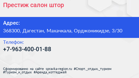 Престиж, салон штор по адресу 368300, Дагестан, Махачкала, Орджоникидзе, 3/30 в дальнейшем Организация, размещена в следующих категориях:
