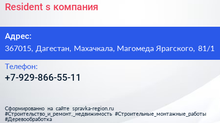 Resident`s, компания по адресу 367015, Дагестан, Махачкала, Магомеда Ярагского, 81/1 в дальнейшем Организация, размещена в следующих категориях: