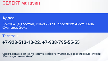 СЕЛЕКТ, магазин по адресу 367904, Дагестан, Махачкала, проспект Амет-Хана Султана, 20/5 в дальнейшем Организация, размещена в следующих категориях: