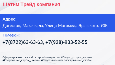Шатим-Трейд, компания по адресу Дагестан, Махачкала, Улица Магомеда Ярагского, 93Б в дальнейшем Организация, размещена в следующих категориях:
