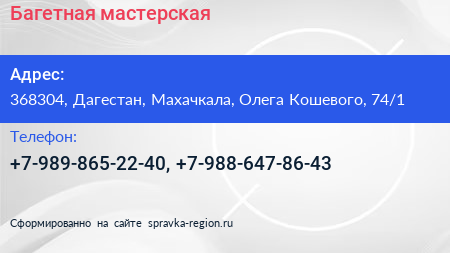 Багетная мастерская по адресу 368304, Дагестан, Махачкала, Олега Кошевого, 74/1 в дальнейшем Организация, размещена в следующих категориях: