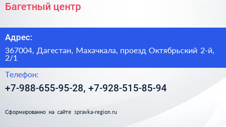 Багетный центр по адресу 367004, Дагестан, Махачкала, проезд Октябрьский 2-й, 2/1 в дальнейшем Организация, размещена в следующих категориях: