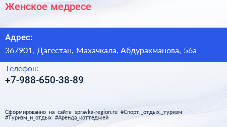 Женское медресе по адресу 367901, Дагестан, Махачкала, Абдурахманова, 56а в дальнейшем Организация, размещена в следующих категориях: