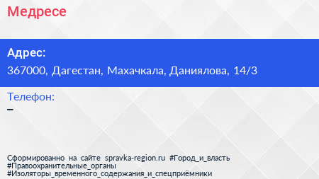 Медресе по адресу 367000, Дагестан, Махачкала, Даниялова, 14/3 в дальнейшем Организация, размещена в следующих категориях: