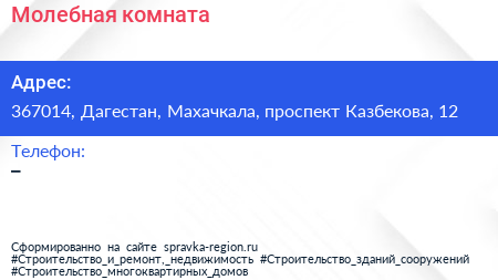 Молебная комната по адресу 367014, Дагестан, Махачкала, проспект Казбекова, 12 в дальнейшем Организация, размещена в следующих категориях:
