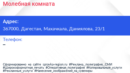 Молебная комната по адресу 367000, Дагестан, Махачкала, Даниялова, 23/1 в дальнейшем Организация, размещена в следующих категориях:
