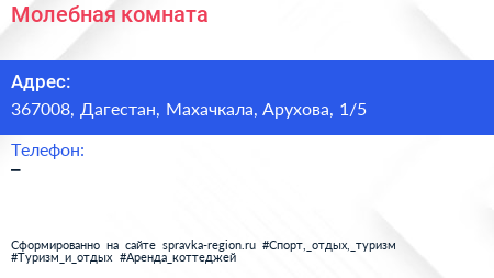 Молебная комната по адресу 367008, Дагестан, Махачкала, Арухова, 1/5 в дальнейшем Организация, размещена в следующих категориях: