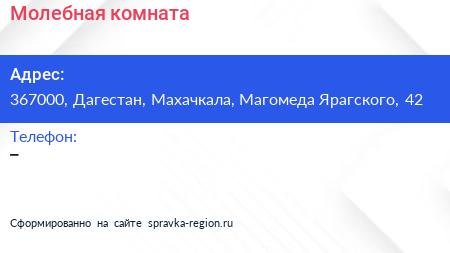 Молебная комната по адресу 367000, Дагестан, Махачкала, Магомеда Ярагского, 42 в дальнейшем Организация, размещена в следующих категориях: