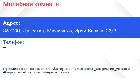 Молебная комната по адресу 367030, Дагестан, Махачкала, Ирчи Казака, 22/3 в дальнейшем Организация, размещена в следующих категориях: