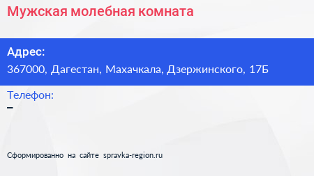 Мужская молебная комната по адресу 367000, Дагестан, Махачкала, Дзержинского, 17Б в дальнейшем Организация, размещена в следующих категориях: