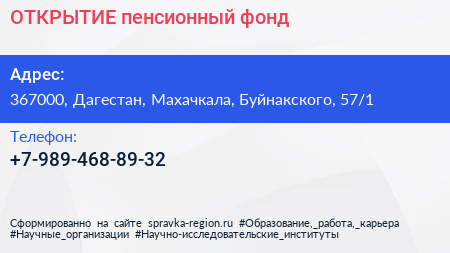 ОТКРЫТИЕ, пенсионный фонд по адресу 367000, Дагестан, Махачкала, Буйнакского, 57/1 в дальнейшем Организация, размещена в следующих категориях: