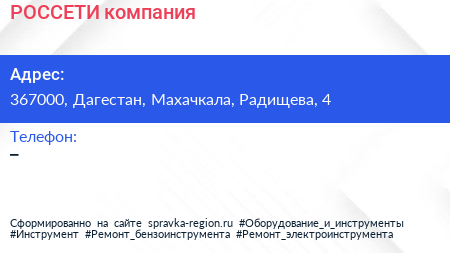 РОССЕТИ, компания по адресу 367000, Дагестан, Махачкала, Радищева, 4 в дальнейшем Организация, размещена в следующих категориях: