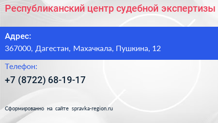 Республиканский центр судебной экспертизы по адресу 367000, Дагестан, Махачкала, Пушкина, 12 в дальнейшем Организация, размещена в следующих категориях: