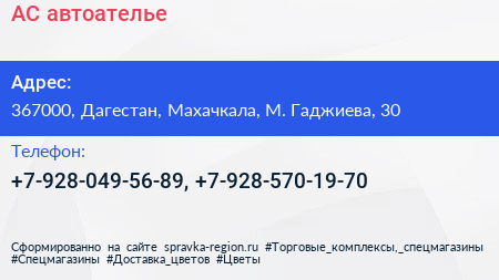 АС, автоателье по адресу 367000, Дагестан, Махачкала, М. Гаджиева, 30 в дальнейшем Организация, размещена в следующих категориях: