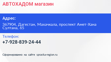 АВТОХАДОМ, магазин по адресу 367904, Дагестан, Махачкала, проспект Амет-Хана Султана, 65 в дальнейшем Организация, размещена в следующих категориях: