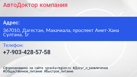 АвтоДоктор, компания по адресу 367010, Дагестан, Махачкала, проспект Амет-Хана Султана, 1г в дальнейшем Организация, размещена в следующих категориях: