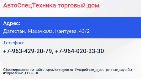 АвтоСпецТехника, торговый дом по адресу Дагестан, Махачкала, Кайтуева, 43/2 в дальнейшем Организация, размещена в следующих категориях: