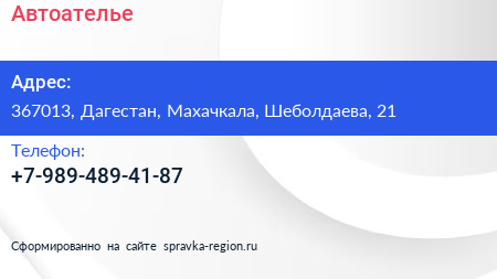 Автоателье по адресу 367013, Дагестан, Махачкала, Шеболдаева, 21 в дальнейшем Организация, размещена в следующих категориях: