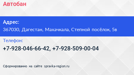 Автобан по адресу 367030, Дагестан, Махачкала, Степной посёлок, 5в в дальнейшем Организация, размещена в следующих категориях: