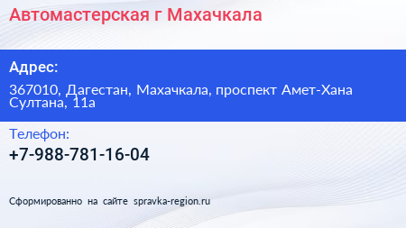 Автомастерская, г. Махачкала по адресу 367010, Дагестан, Махачкала, проспект Амет-Хана Султана, 11а в дальнейшем Организация, размещена в следующих категориях: