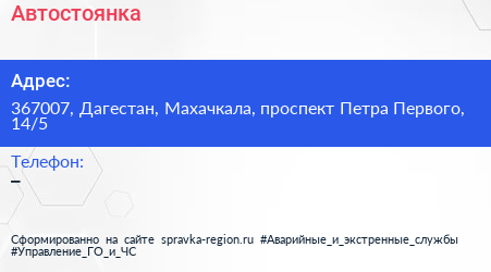 Автостоянка по адресу 367007, Дагестан, Махачкала, проспект Петра Первого, 14/5 в дальнейшем Организация, размещена в следующих категориях: