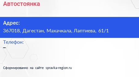 Автостоянка по адресу 367018, Дагестан, Махачкала, Лаптиева, 61/1 в дальнейшем Организация, размещена в следующих категориях: