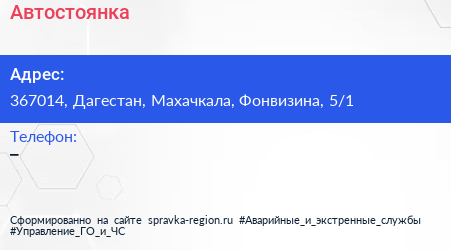 Автостоянка по адресу 367014, Дагестан, Махачкала, Фонвизина, 5/1 в дальнейшем Организация, размещена в следующих категориях: