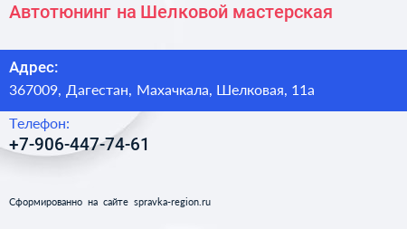 Автотюнинг на Шелковой, мастерская по адресу 367009, Дагестан, Махачкала, Шелковая, 11а в дальнейшем Организация, размещена в следующих категориях: