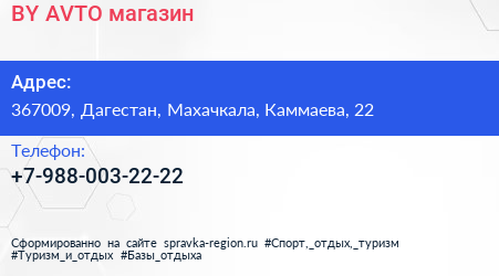 BY AVTO, магазин по адресу 367009, Дагестан, Махачкала, Каммаева, 22 в дальнейшем Организация, размещена в следующих категориях:
