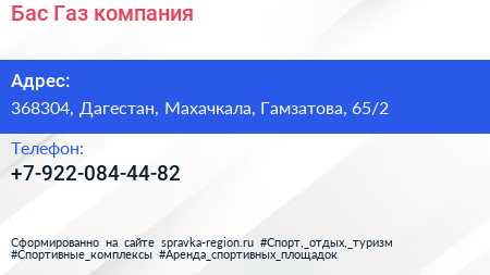 Бас Газ, компания по адресу 368304, Дагестан, Махачкала, Гамзатова, 65/2 в дальнейшем Организация, размещена в следующих категориях: