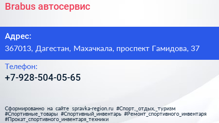 Brabus, автосервис по адресу 367013, Дагестан, Махачкала, проспект Гамидова, 37 в дальнейшем Организация, размещена в следующих категориях: